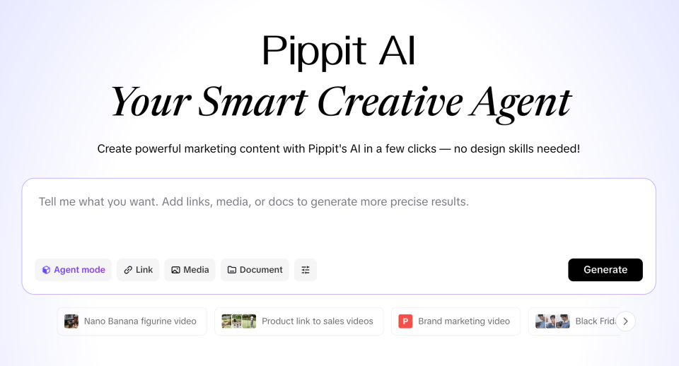 Pippit AI is built to fix exactly that. It’s a “smart creative agent” that turns product links, images, and ideas into ready-to-publish marketing videos, product photos, and social content in just a few clicks – no design or editing skills required.